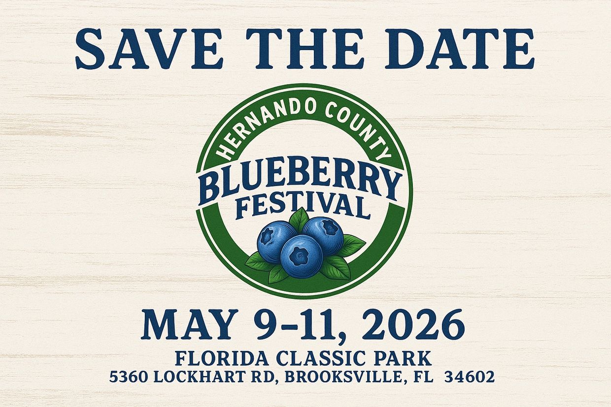 The Hernando County Blueberry Festival is coming May 9–11, 2026 — and you won't want to miss this berry sweet celebration! Join us for a nostalgic weekend filled with blueberry pie-eating contests, homemade recipe competitions, blue-ribbon livestock showcases, toe-tapping live music, and good old-fashioned county fun.